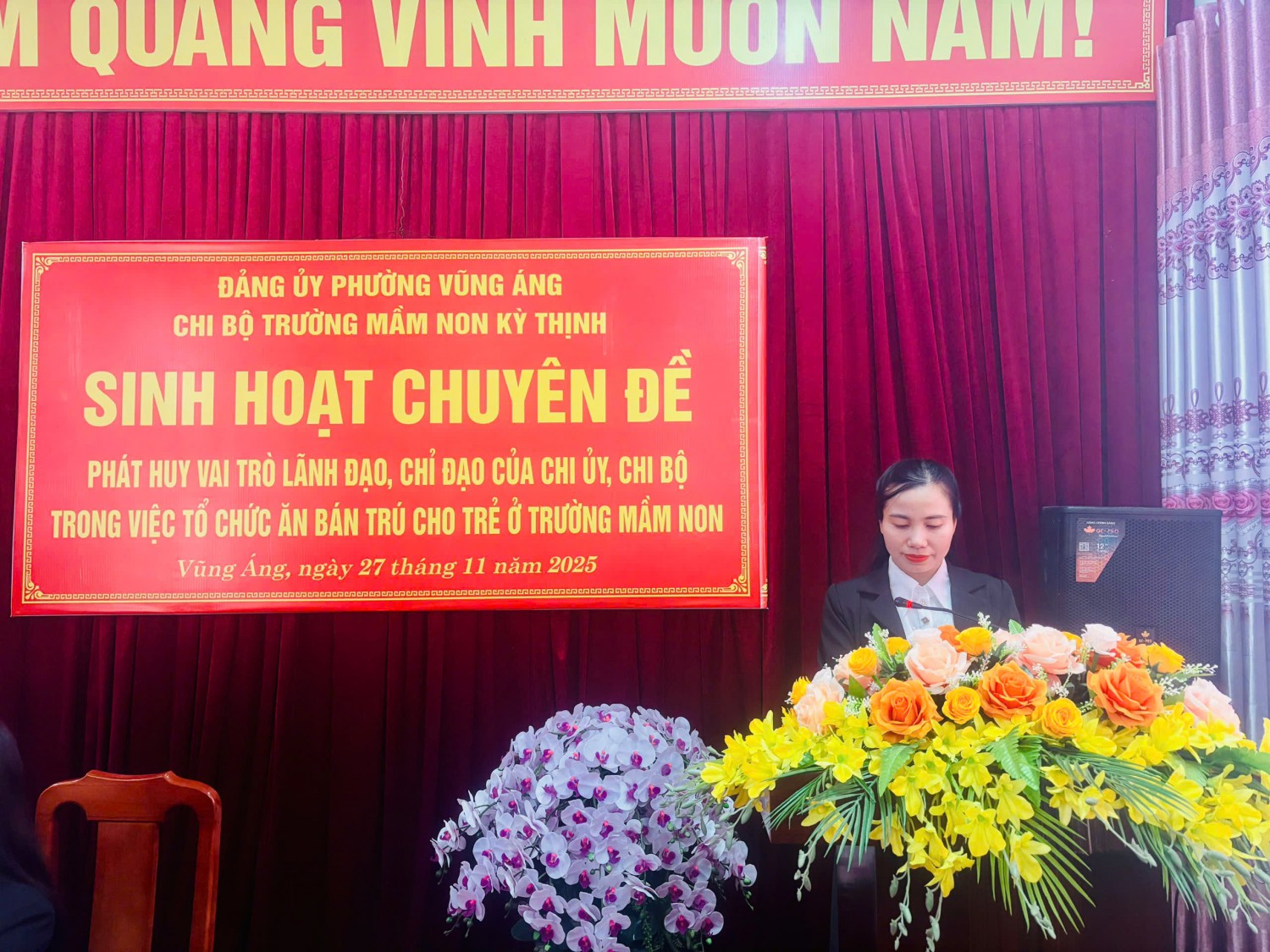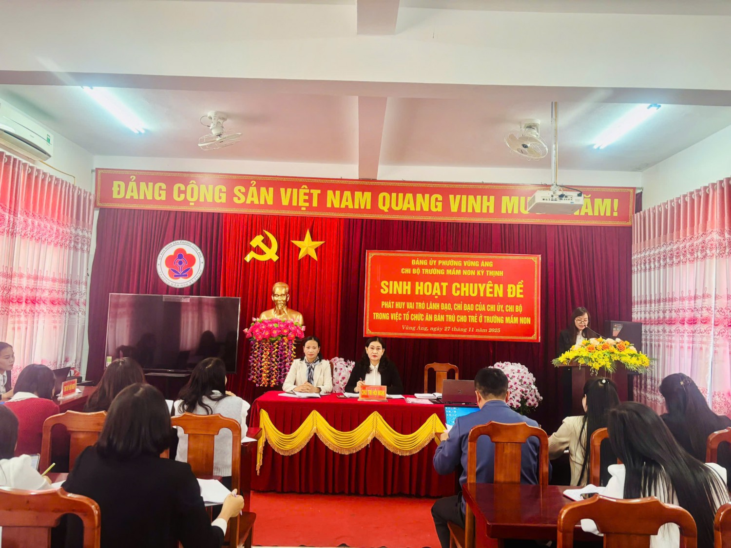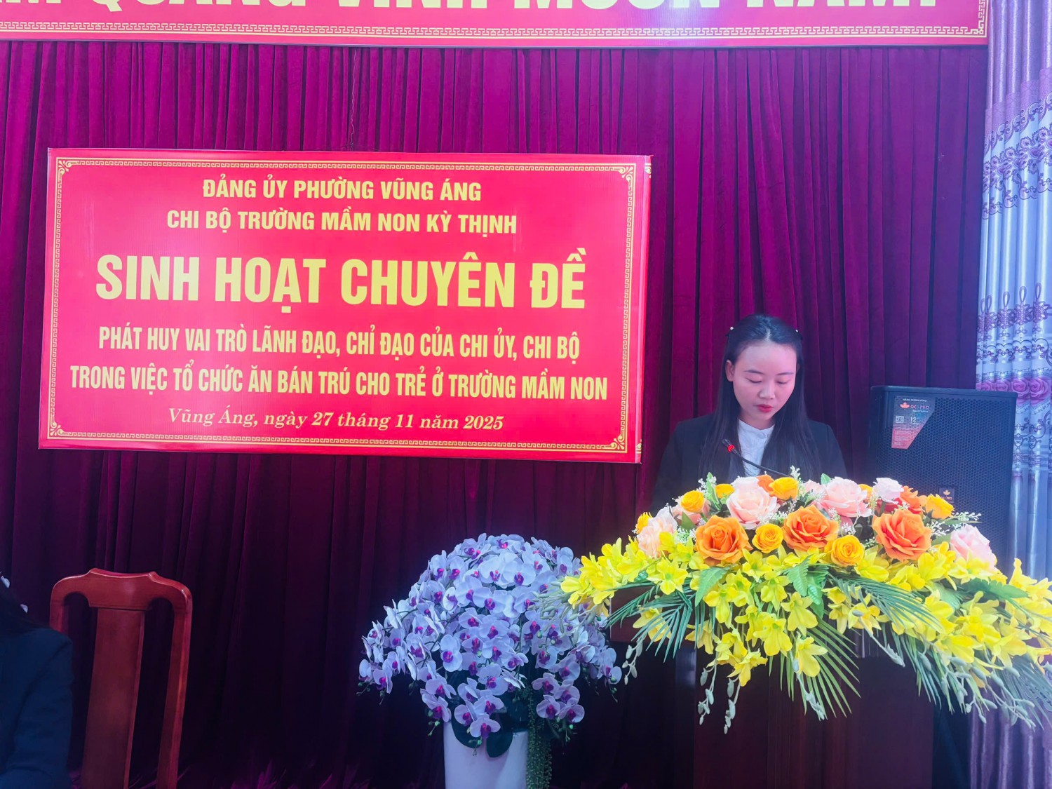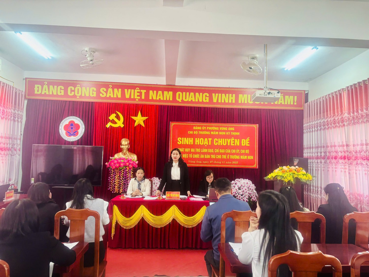 “Phát huy vai trò lãnh đạo, chỉ đạo của Chi uỷ, Chi bộ trong việc tổ chức ăn bán trú cho trẻ ở Trường Mầm non”.