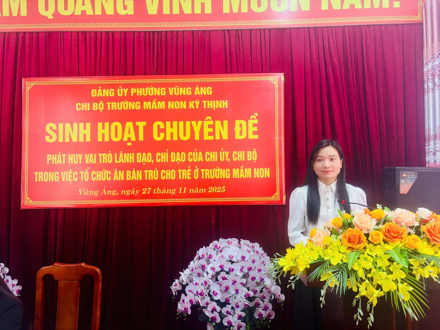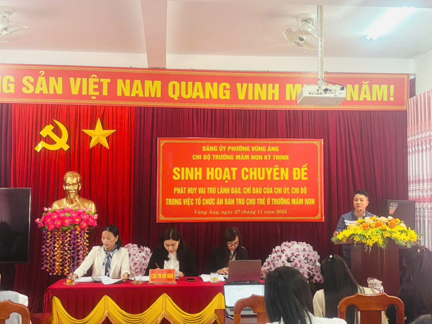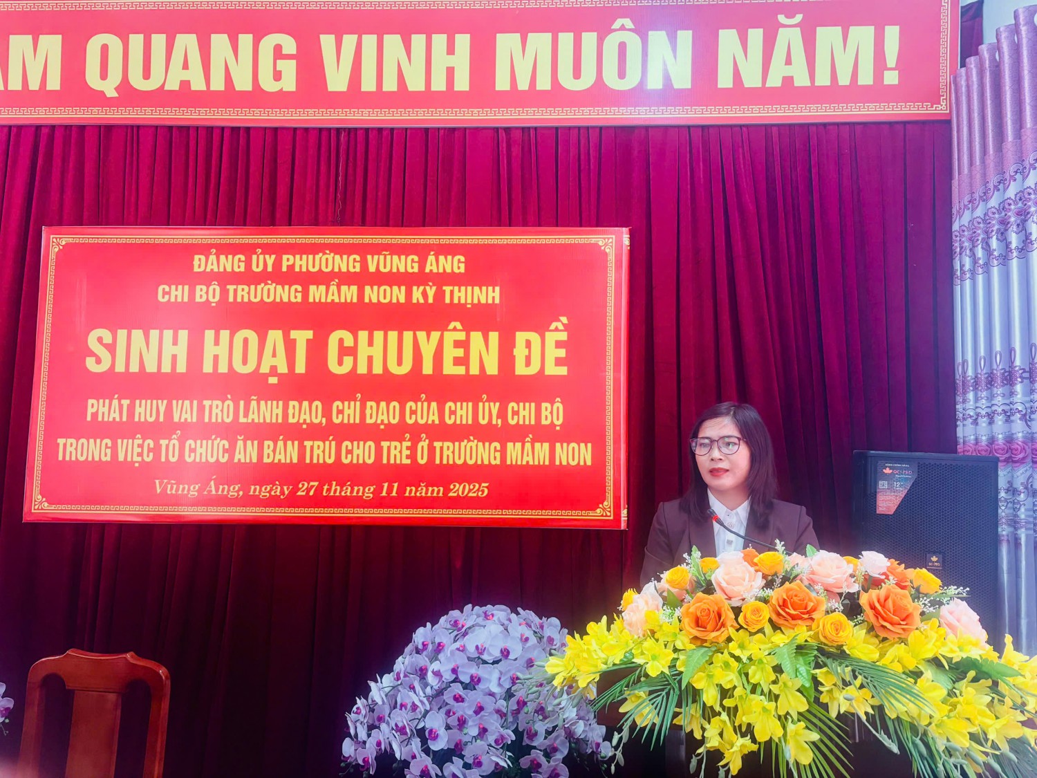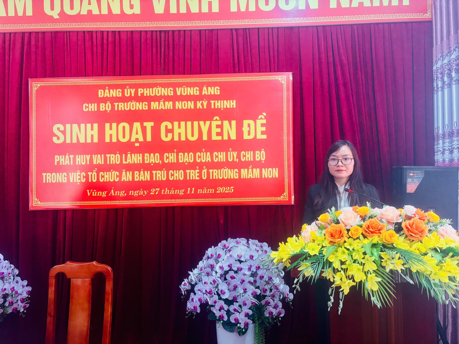 “Phát huy vai trò lãnh đạo, chỉ đạo của Chi uỷ, Chi bộ trong việc tổ chức ăn bán trú cho trẻ ở Trường Mầm non”.