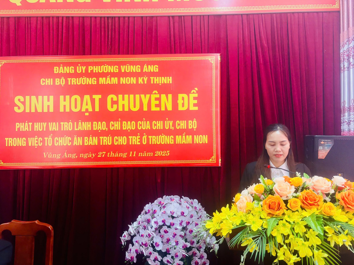Phát huy vai trò lãnh đạo, chỉ đạo của chi uỷ, chi bộ trong thực hiện nhiệm vụ đưa vào sinh hoạt chuyên đề với mong muốn tìm ra những giải pháp cụ thể để khắc phục những tồn tại hạn chế, góp phần nâng cao chất lượng nuôi dưỡng trẻ trong trường mầm non.