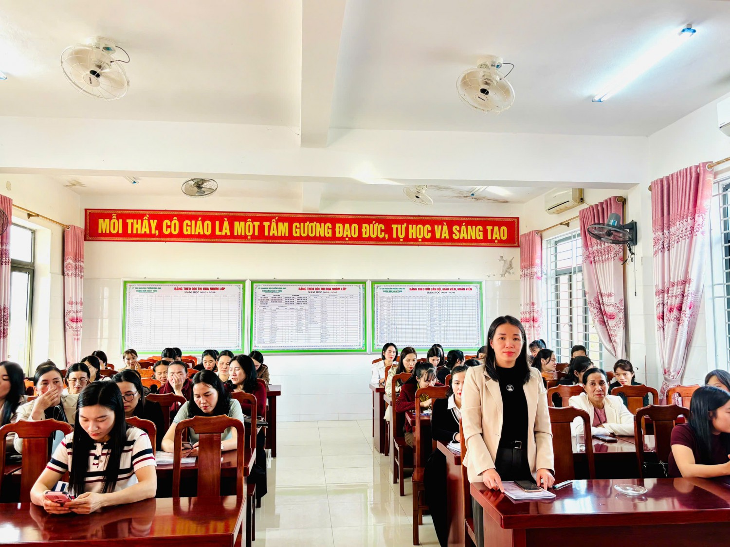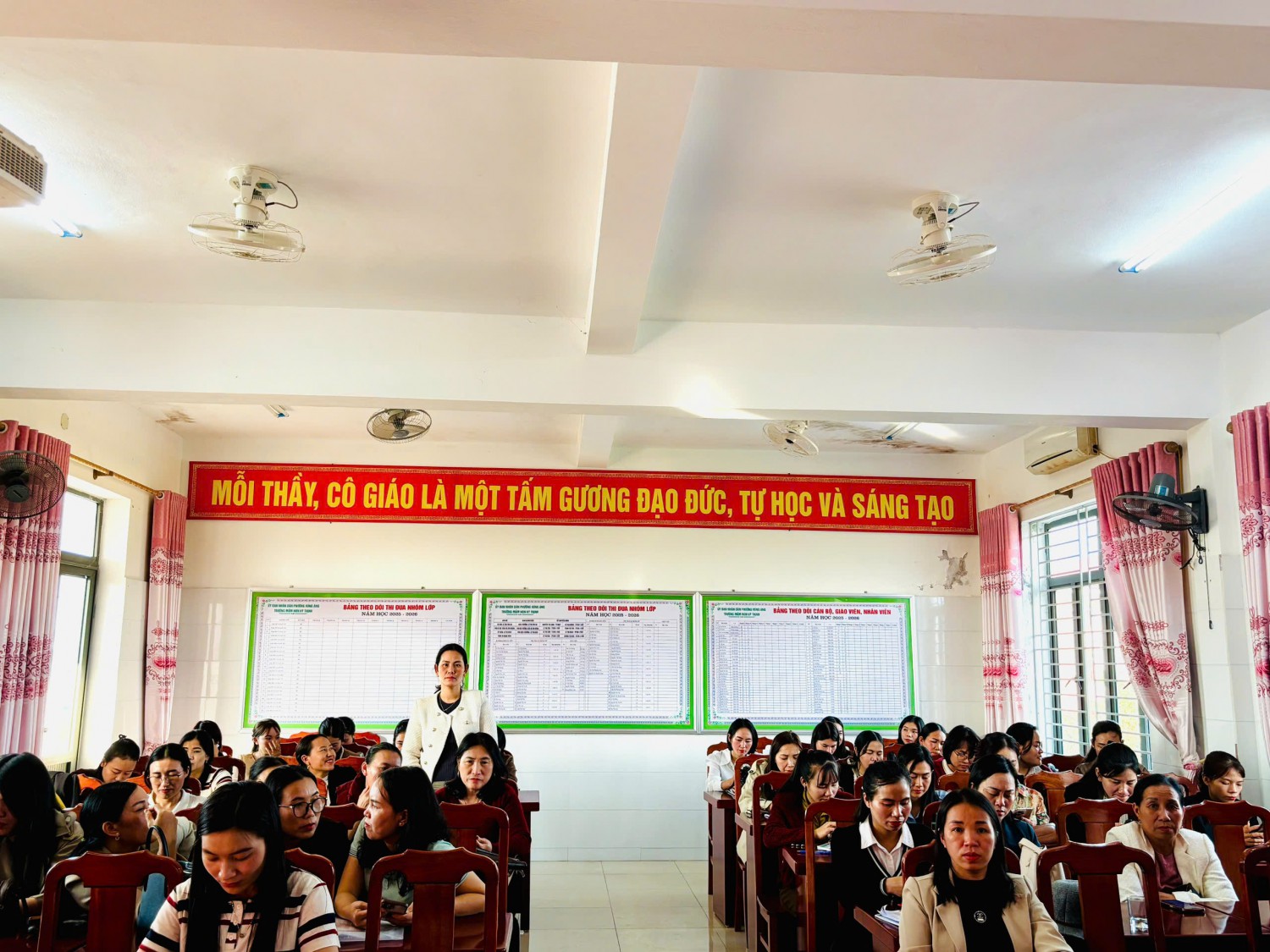Hội nghị diễn ra trong không khí nghiêm túc – dân chủ – trách nhiệm, với sự tham dự đầy đủ của các đồng chí trong Ban Giám hiệu nhà trường cùng toàn thể cán bộ, giáo viên, nhân viên. Đây cũng là dịp để nhà trường cùng nhìn lại chặng đường đã qua, ghi nhận những nỗ lực, cố gắng của từng cá nhân và tập thể trong công tác chăm sóc, nuôi dưỡng và giáo dục trẻ.