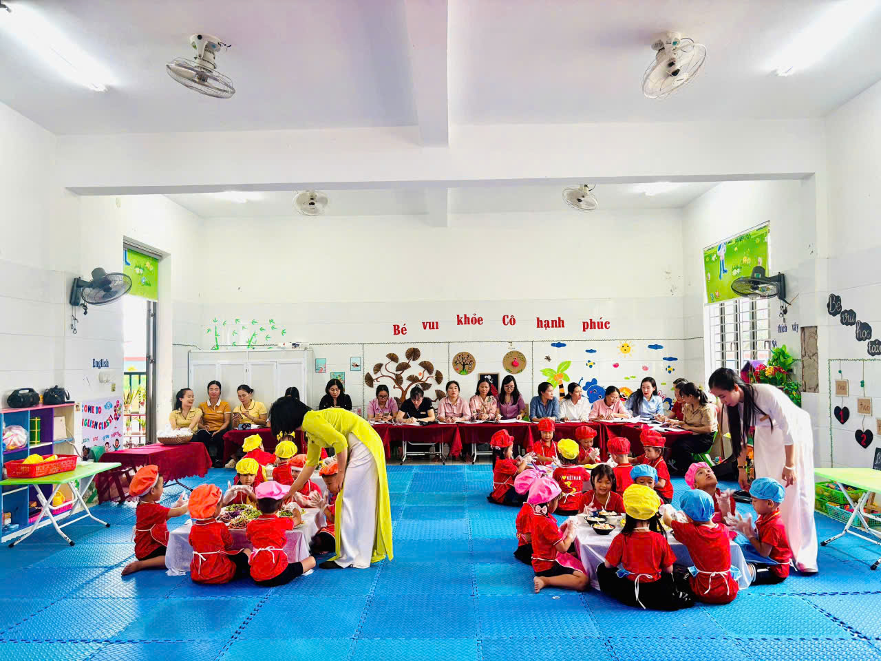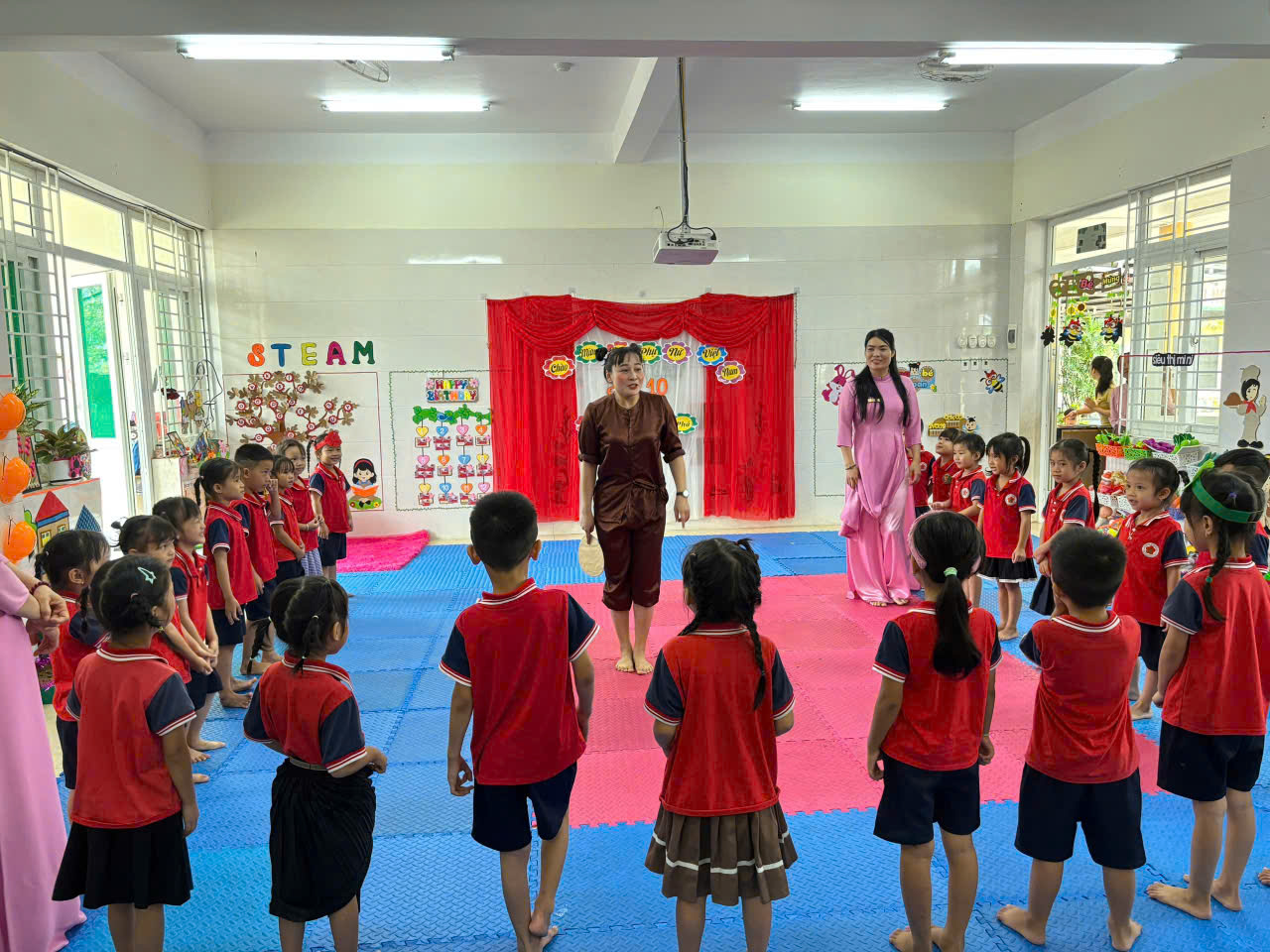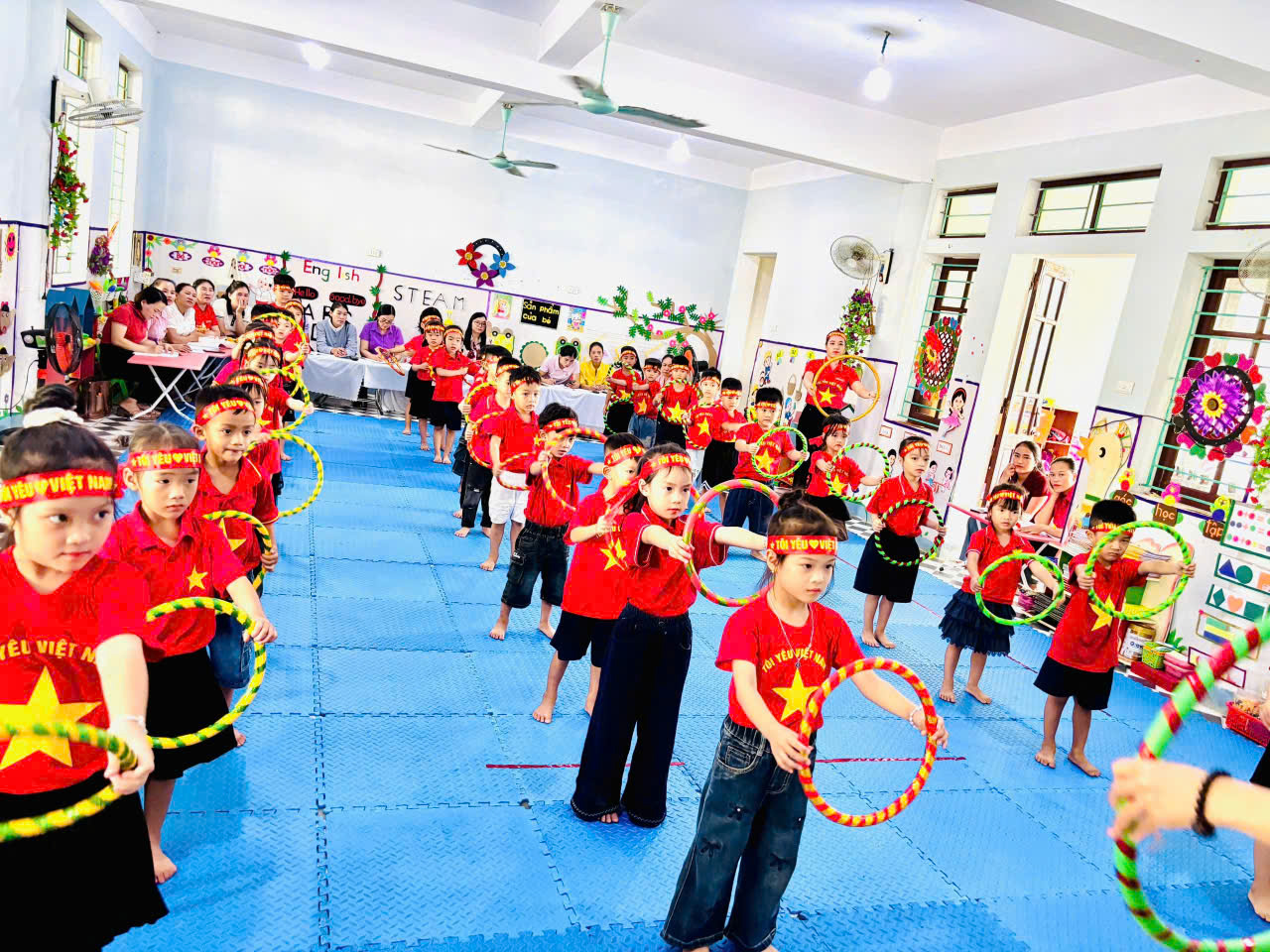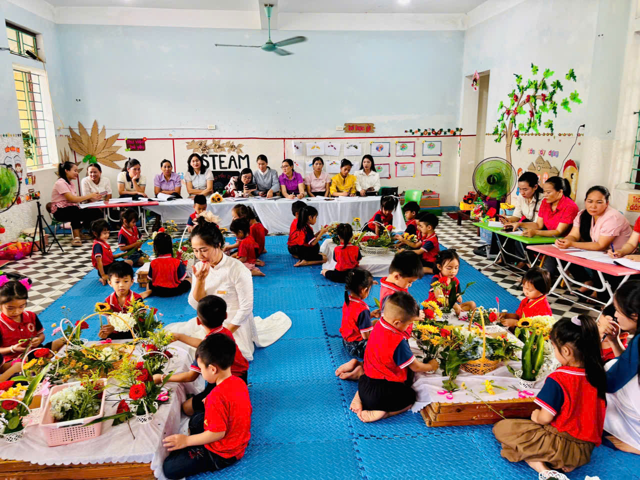 Phong trào vừa được phát động đã nhanh chóng được tập thể giáo viên hưởng ứng nhiệt tình đây là hoạt động diễn ra với không khí hết sức sôi nổi tạo điều kiện cho các giáo viên thể hiện năng lực chuyên môn học tập, trao đổi kinh nghiệm lẫn nhau, nhằm rèn luyện nâng cao nghiệp vụ sư phạm được thể hiện qua các hoạt động diễn ra trong suốt hội giảng với tinh thần và ý nghĩa đó đã có 6 hoạt động của các cô tham gia giảng dạy. Các tiết dạy có sự đổi mới sáng tạo theo quan điểm " Giáo dục lấy trẻ làm trung tâm". Các hoạt động thao giảng được chuẩn bị rất chu đáo, có sự đầu tư về phương tiện, đồ dùng, đồ chơi được làm bằng các nguyên vật liệu sẵn có. Giáo viên lên lớp mạnh dạn, tự tin khi ứng dụng lồng ghép phương pháp giáo dục Steam vào các hoạt động đã đem đến những giờ dạy tốt, những hoạt động thành công.